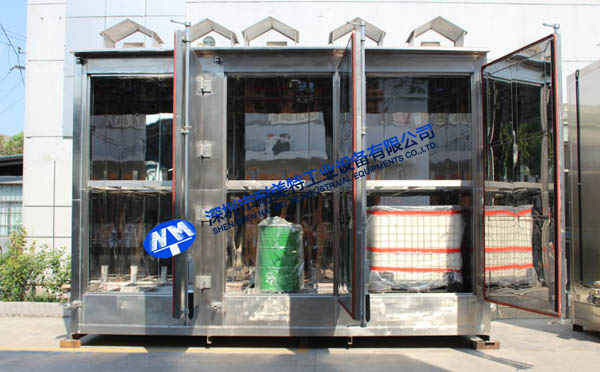 1、烘烤產(chǎn)品:烘箱內(nèi)放置6件尺寸為W1000*L1200*H1160的包裝桶,每個(gè)包裝桶容積為1000L。